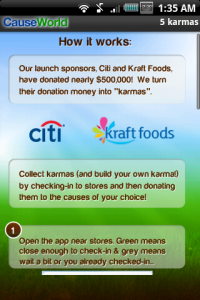 It’s time to step up and put your Android phone to a good cause, of your choice, not someone else’s! Citi, Kraft Foods and P&G has donated nearly $500,000.00 in conjunction with CauseWorld, by Shopkick, to bring you the greatest application on Android yet. It was featured in The Wall Street Journal, The New York Times, The Washington Post and even ABC.