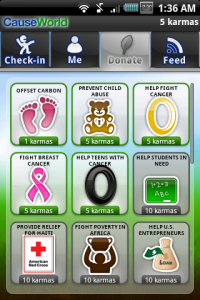 The idea is simple. Using your phone’s GPS while you are out and about in town, the application will tell you what stores or locations are part of the donation team. Once you are in range you can collect your Karma points. You get to take those Karma points and turn them into your cause for cash donations. Each Cause has a different Karma donation point level, so some of your favorite causes may need a little more work on your part. You can choose from causes including but not limited to: Offset carbon footprint, Prevent child abuse, Help fight cancer or help students in need. There are 23 causes available on the application. You can also request others to be added directly through the application via email. With the incorporation of Facebook to recruit your friends and share your achievements it’s easy to show off how great of a person you are!