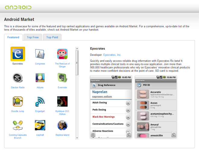 Well, we know that Android is growing like a weed on steroids, so Google decided to update their Android Market site to meet the increasing demand. Google has changed the whole theme and design of the Android Market online site, making it easier to browse through free, paid, and featured applications. But wait a minute Google, where is the Search box? Come on, we know that you are the best search engine provider,  so why can’t you add a simple Search box so we can easily search through the 50,000+ apps you have to offer. While you’re at it, add some ways of filtering the application into the different categories that already exist in the Android Market!