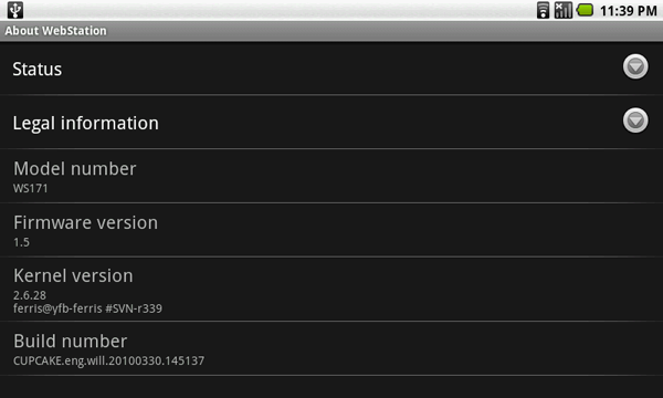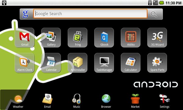Powering on the device was quick. After plugging in the power supply and pressing the power button, the Android Home Screen, or Camangi’s version of it, was in front of me within seconds. One downside is the device is running the original Android 1.5.