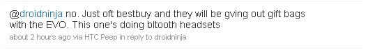 The tweet speaks for itself. A new bluetooth headset go with your new Evo would be a pretty nice bonus. If you were on the fence about getting a new Android, does this sway you at all?