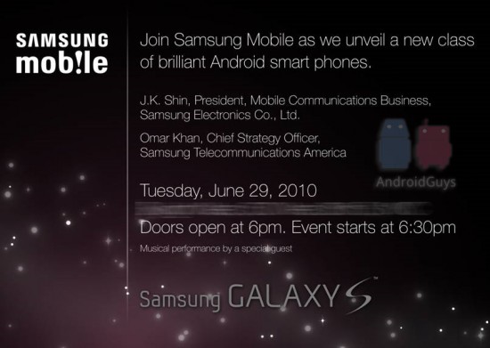 June 29th marks a big night for Samsung and Android, as rumors are gathering about what this event might hold. Some are saying the premier of the Samsung Galaxy S, which has already launched around different parts of the globe and others are saying Samsung could announce the whole line of the Galaxy series devices. The Samsung Galaxy S Pro, which we have seen floating around the community, has Sprint’s branding with a slide out QWERTY keyboard and is fueling much anticipation for this event. What keeps us all hanging is the quote from the invitation of that states: